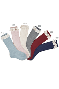 Calcetines largos por debajo de la rodilla, 85% algodon con detalle en puntilla vintage.