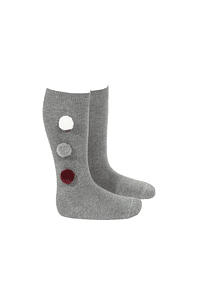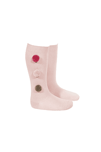 Calcetines largos por debajo de la rodilla con tres borlas a contraste en el lateral.
