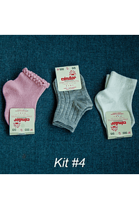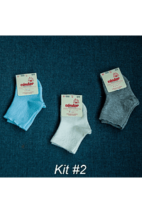 Cada Kit contiene 3 calcetines Talla 000 (0 a 3 meses).